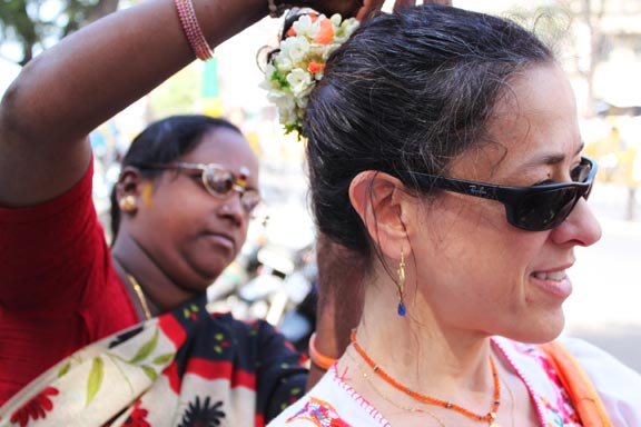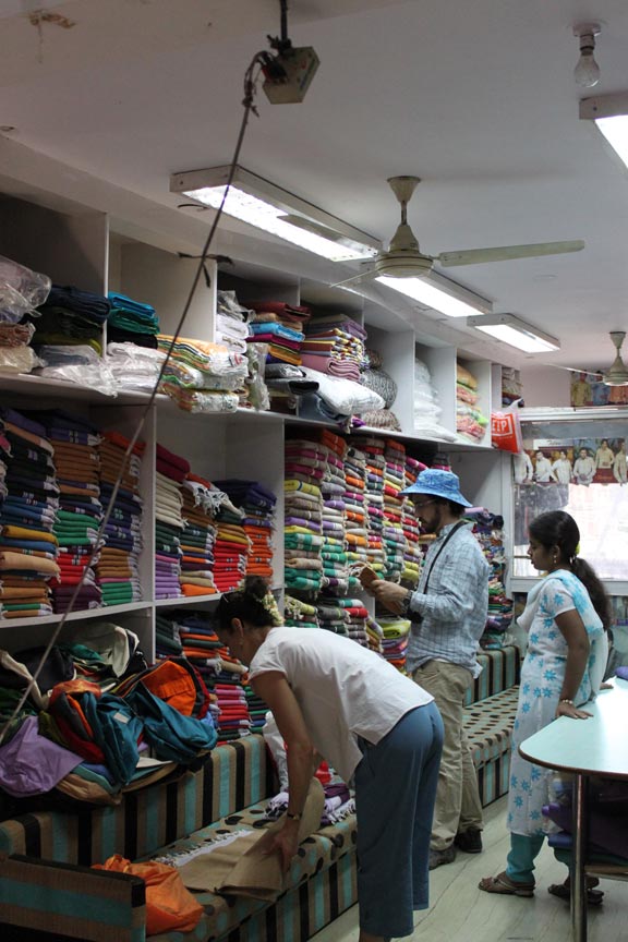 First trip to the market in downtown Mysore. Really the second but we actually went in this time… Maria, Dan and I hopped in a rickshaw and headed out. This was last Saturday. So vibrant. We got pegged right away as tourists (not difficult to do) and immediately had several “guides” helping us along our way through the market. They were relentless! I don’t believe I have ever been hounded that much to buy something. Relentless. It doesn’t matter how many times you say no. And then you buy something to make them stop. But it doesn’t stop. They send one of their friends over. And the process starts again. Eventually we had to really tell them to leave us alone. Not so fun and kind of a bummer but we made it through.