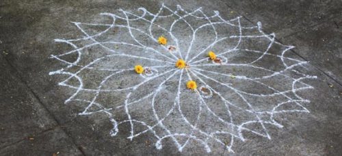 That’s just one example of how people can be. Doing things because that is what needs to be done. No problem. You do. So even though I look out at the street and see garbage everywhere… people do care. That’s what is so damn beautiful!! Homes are well taken care of. Large prestigious homes and makeshift shanties constructed of scraps. There’s a morning ritual here. Puja. Women washing off the driveway or entryway to their homes and drawing fresh rangolis (a pattern, usually drawn with chalk on entryways to homes or businesses), watering plants, doing laundry; colorful fabrics out to dry over clotheslines and balconies. Fresh flowers hang above the doorways and sometimes, the sweet sound of drums, bells and chanting echo through the air. Shoes off at the door. Respect.