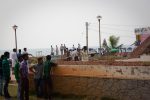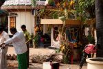 Construction zone. Construction workers live in little cinder block huts next to the house they are building.